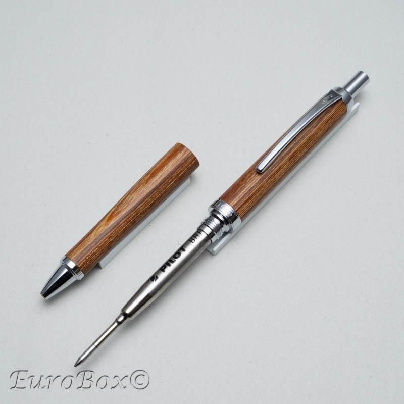 コムプライトと呼ばれるカバ材を積層処理して仕上げたボールペン。使えば使うほどに光沢が出て、木軸特有の味を楽しむことができます。